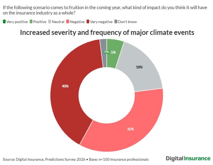 The majority of insurance professionals are expecting an increase in the frequency and severity of major climate events this year, according to The Digital Insurance Predictions 2026 survey.